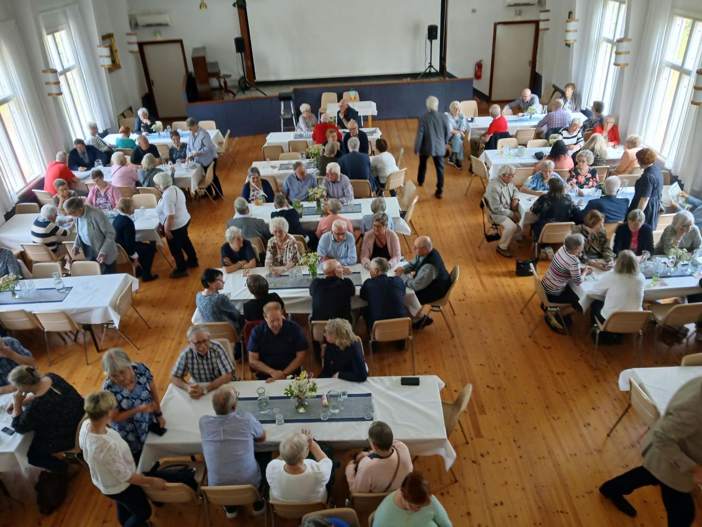 Idag 5.6 samlades 150 pensionärer till den åboländska sommarträffen i Vårdkasen i Västanfjärd. Utgående från ljudvolymen och sorlet i salen, var stämningen i topp!